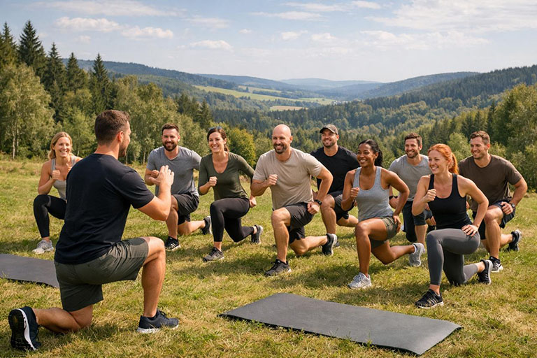 We combineren hikes met total body workouts, pilates en yoga stretching. Het idee is eenvoudig: je wordt actief, maar op een manier die haalbaar blijft. Kracht en core, mobiliteit en lengte in je spieren, en vooral: je lichaam weer soepel en sterk laten aanvoelen.